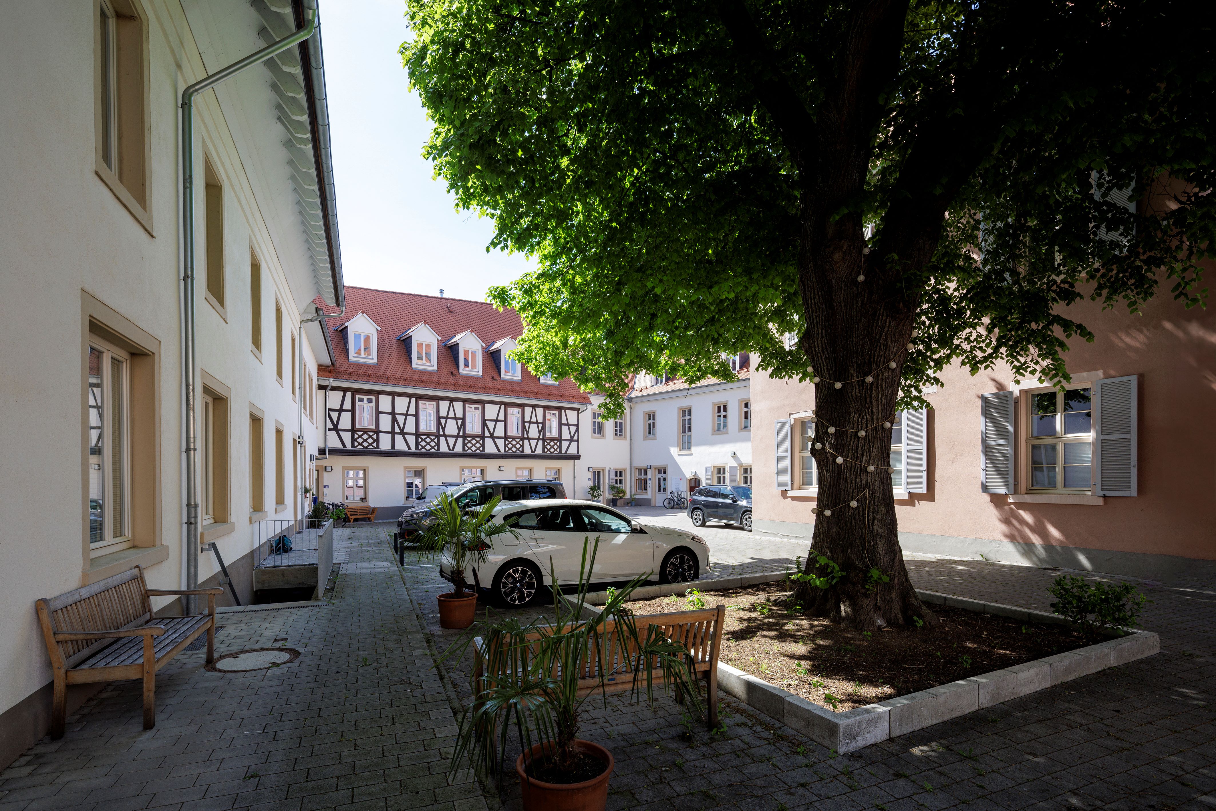 Die Umgestaltung der Ludwigshöfe in Speyer, einem Ensemble äußerst heterogener Bauten in der Ludwigstraße, orientierte sich am Vorbild mittelalterlicher Wohnhöfe wie den flandrischen Begijnenhöfen. Ohne die unterschiedlichen Entstehungszeiten der einzelnen Bauwerke vom frühen Barock bis ins zwanzigste Jahrhundert zu verleugnen, sollte doch eine harmonische Gesamtwirkung entstehen; dabei wurde darauf geachtet, denkmalpflegerisch wertvolle Substanz weitestgehend zu erhalten und durch freie Ausformulierung abgängiger Bauteile so zu ergänzen, dass eine auch wirtschaftlich vertretbare Gesamtanlage entsteht.