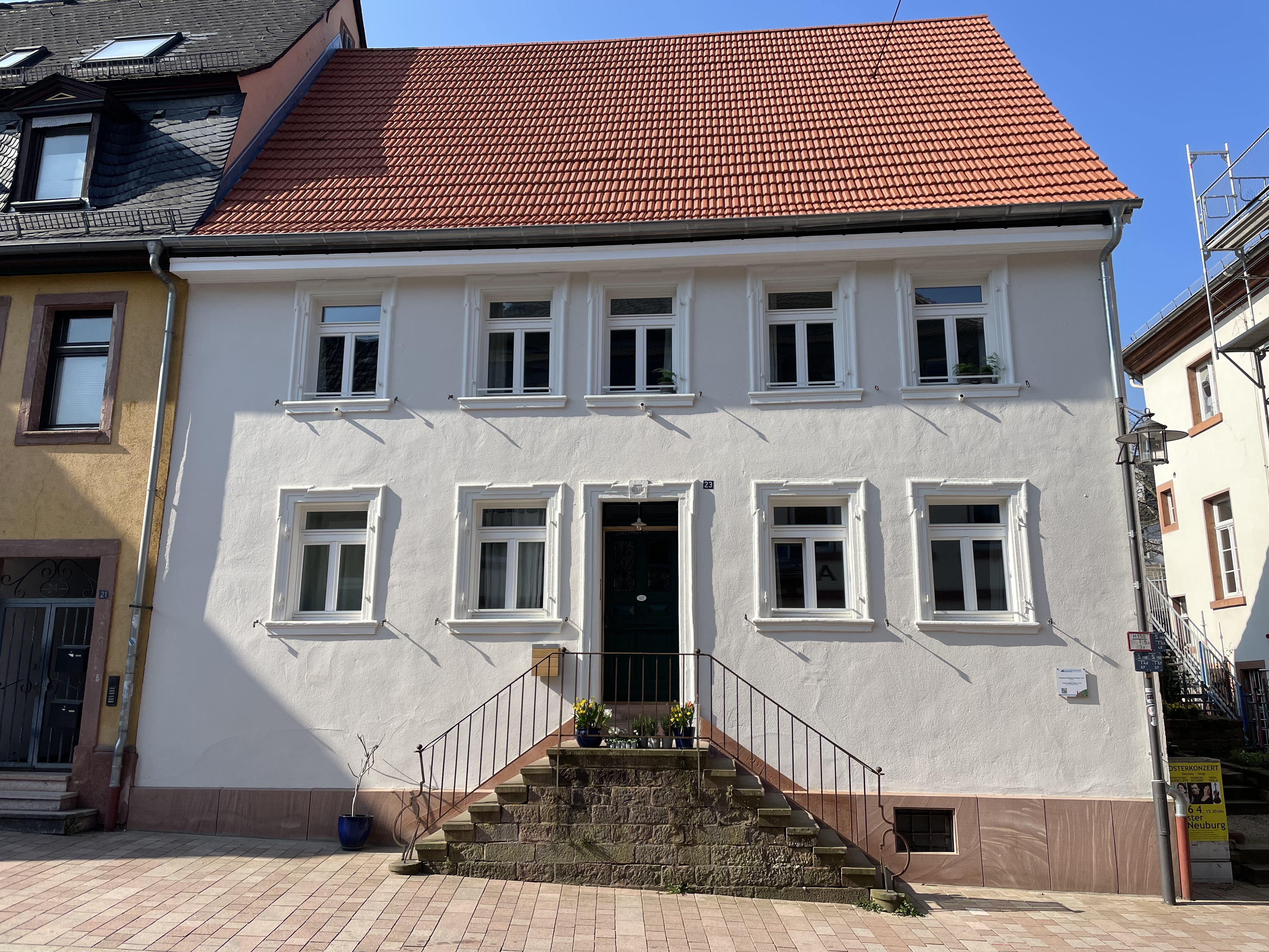 Das ursprünglich als Pfarrhaus erbaute alte Grundbuchamt von Neckargemünd wurde zuletzt als Kinderhort genutzt, und war nun einer Wohnnutzung zuzuführen. Dazu waren umfangreiche Grundrissänderungen notwenig, die in enger Abstimmung mit der Denkmalpflege erfolgten. In die neue Konzeption flossen zahlreiche durch die Rückbaumaßnahmen gewonnene Erkenntnisse über die Bauhistorie des schönen Barockgebäudes ein. Das Egebnis ist ein gelungenes Beispiel sinnvoller Wohnraumschaffung im Ortskern.