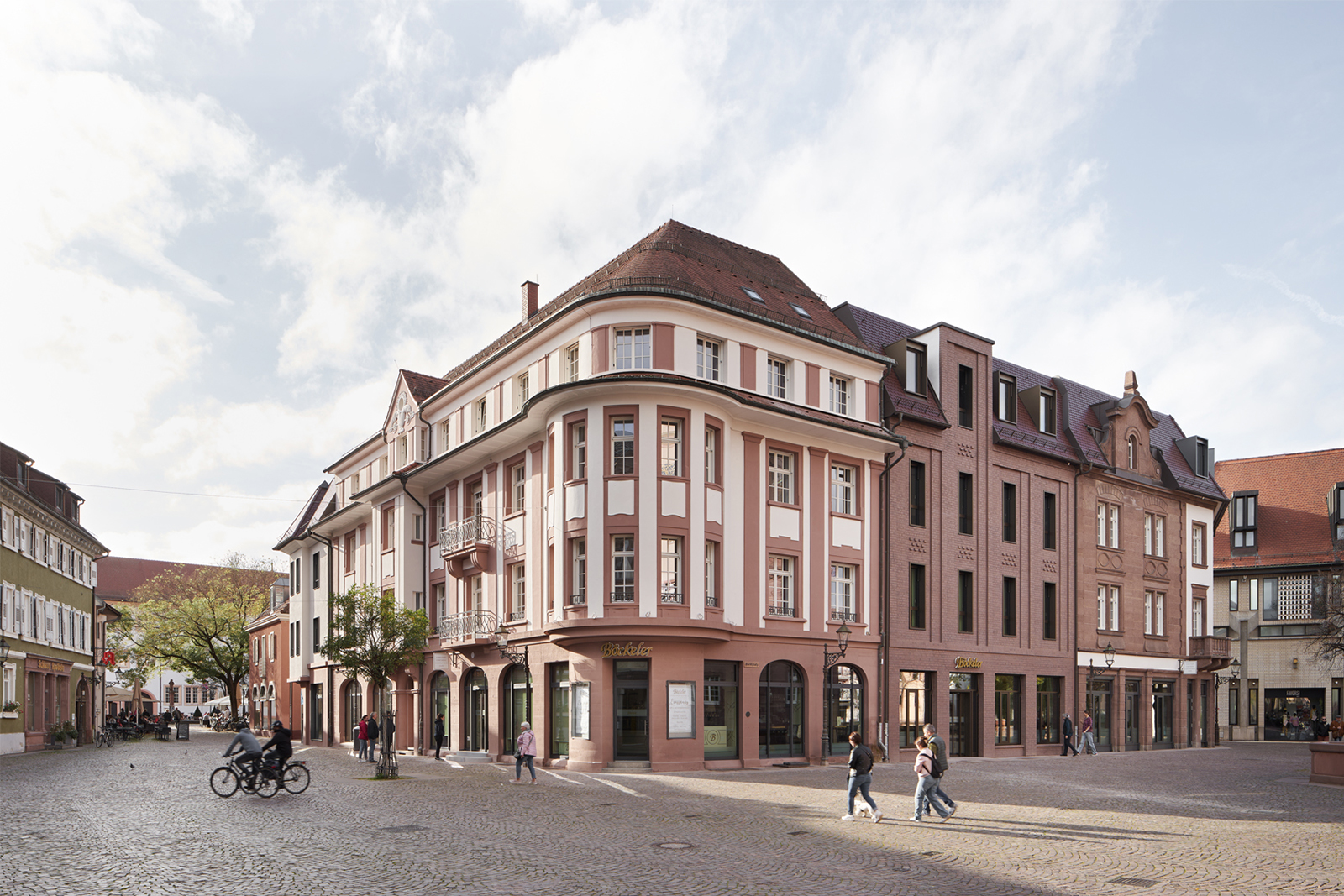 Der ehemalige zweite Hauptsitz der Sparkasse Karlsruhe, ein aus mehreren Gebäuden bestehender Stadtbaustein inmitten der Altstadt von Ettlingen gelegen, wurde wegen interner Umstrukturierungen aufgegeben und saniert. Da der Stadtbaustein nur auf einen Nutzer zugeschnitten ist, haben wir neben der technischen Grundsanierung auch ein neues Erschließungskonzept entwickelt, um das Gebäude für mehrere Nutzer zugänglich zu machen, unterschiedlich große Mieteinheiten zu generieren und um insgesamt flexibler bei der Vermarktung zu sein.