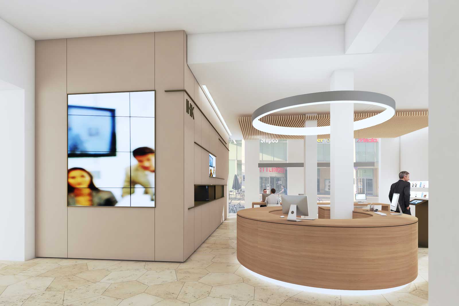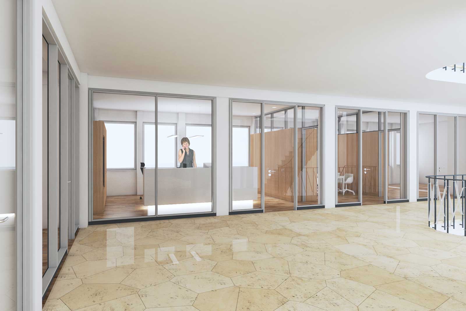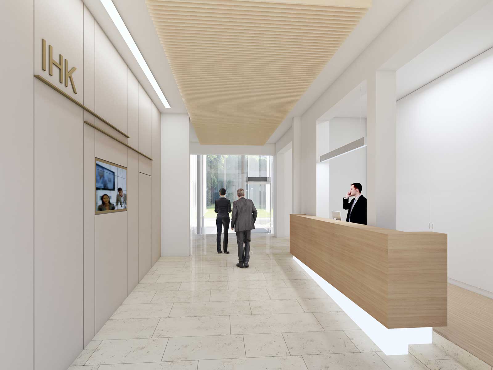 Im Zuge unserer Überlegungen konnte der Entwurf dahingehend präzisiert werden, dass die IHK insgesamt offener, kundenfreundlicher und transparenter gestaltet werden sollte, unter gleichzeitiger Wahrung der originären Raumauffassung der fünfziger Jahre.