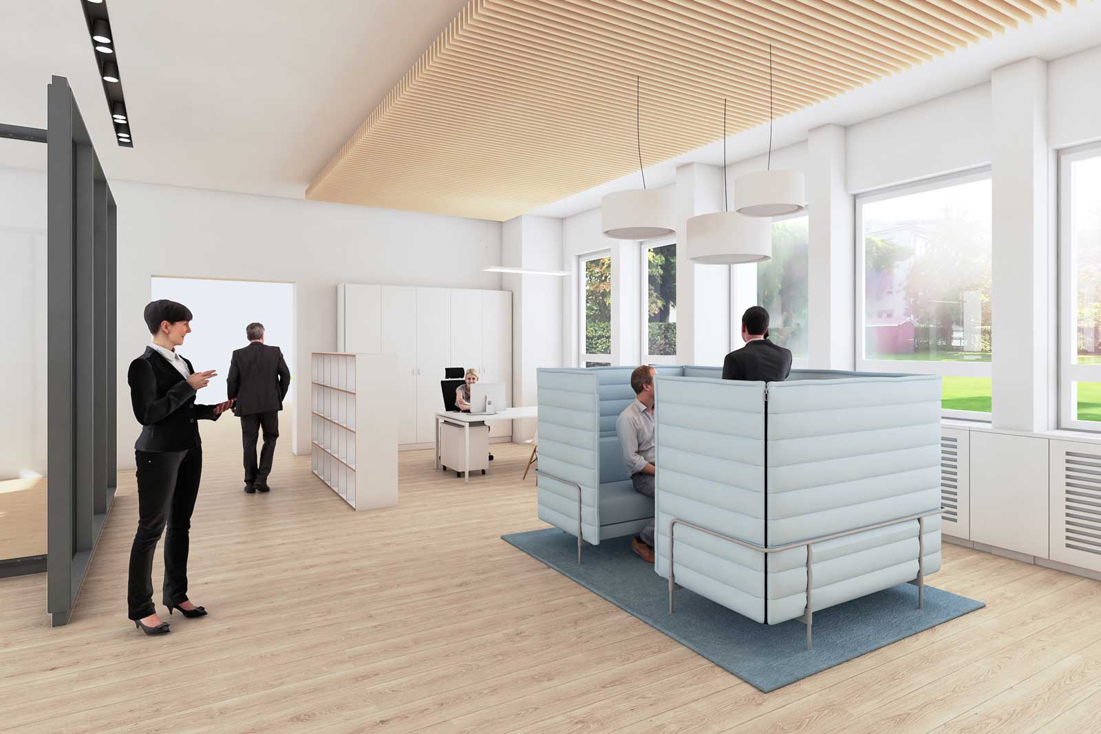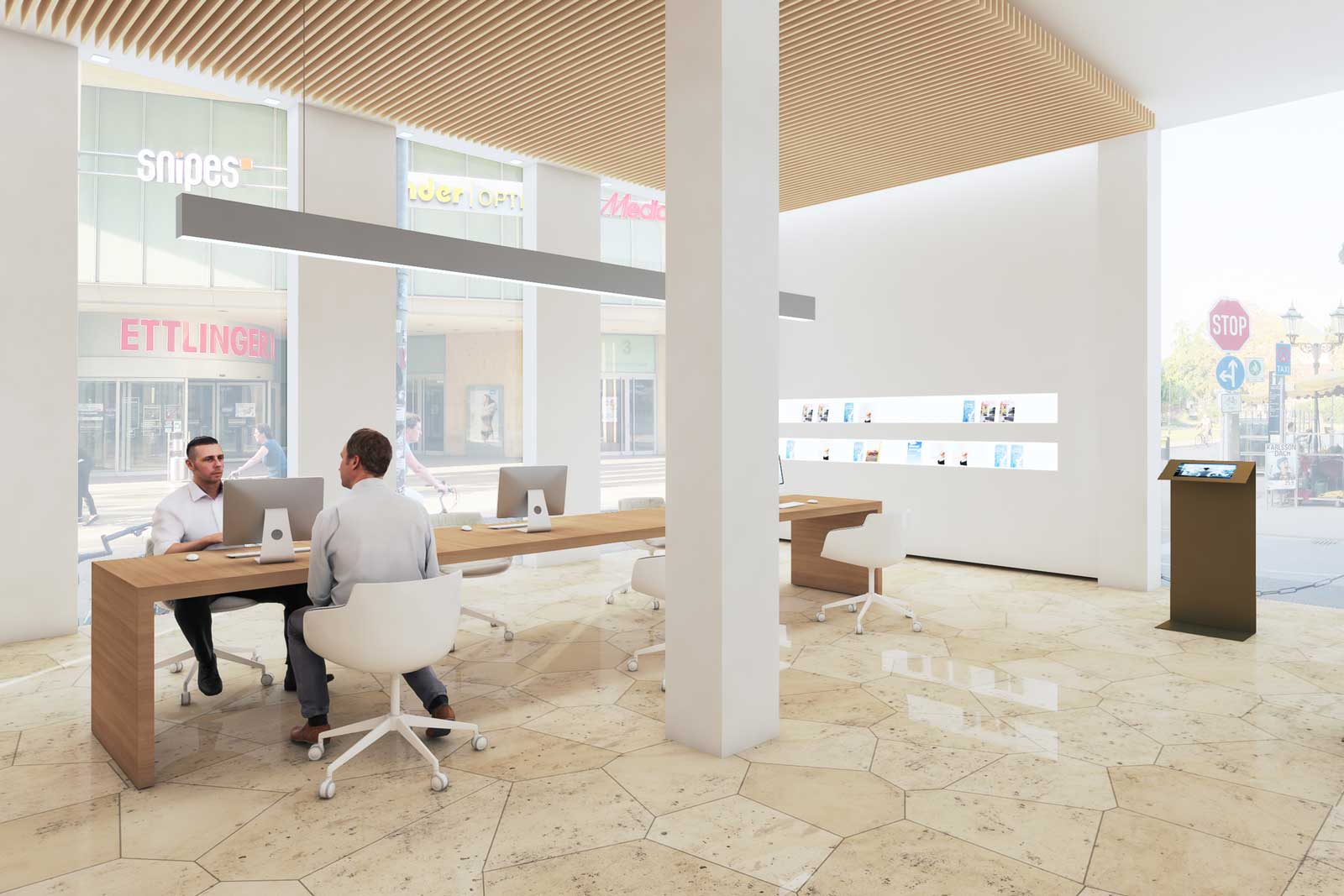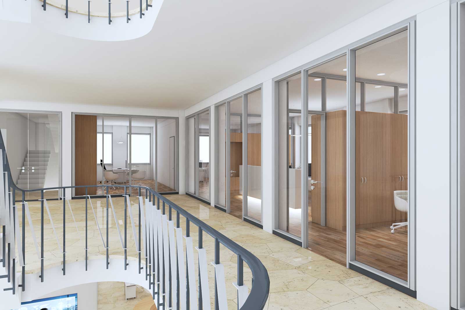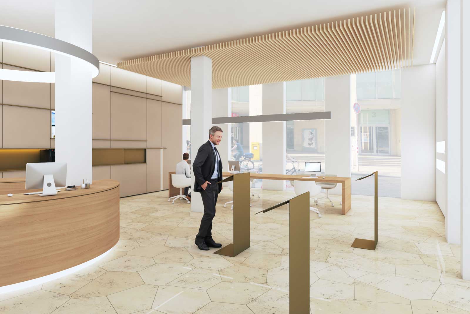 Im Zuge unserer Überlegungen konnte der Entwurf dahingehend präzisiert werden, dass die IHK insgesamt offener, kundenfreundlicher und transparenter gestaltet werden sollte, unter gleichzeitiger Wahrung der originären Raumauffassung der fünfziger Jahre.
