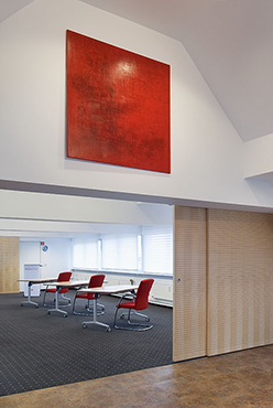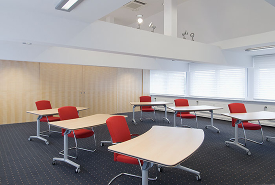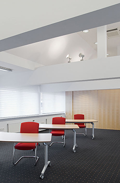 Das Dachgeschoss einer Verpackungsfirma war auszubauen, sowohl im Bereich der Geschäftsführung als auch mit einem Schulungsraum für die sogenannte PS-Akademie.