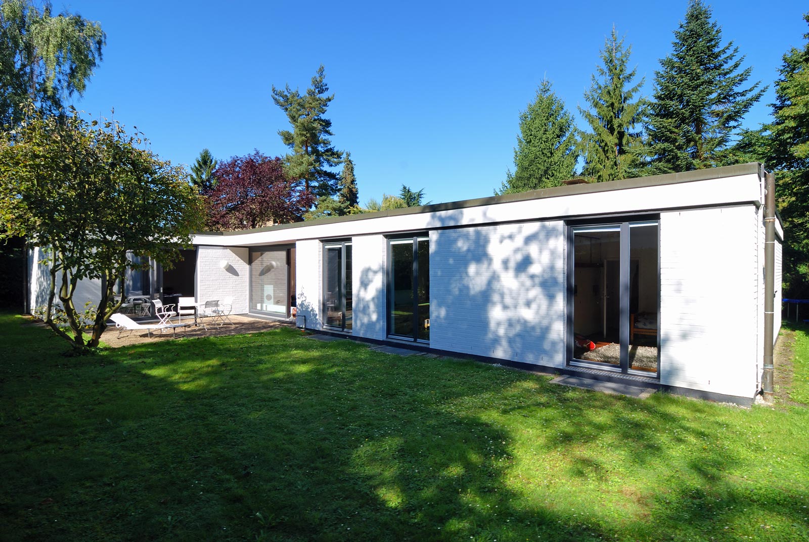 Hat man es oft bei Wohnhausumbauten mit mehr oder weniger undankbaren Bauaufgaben zu tun, lag der Fall hier anders. Ein schöner, gut geplanter und durchdachter Bungalow aus den sechziger Jahren, weitgehend im Originalzustand erhalten, sollte für die Bedürfnisse einer jungen Familie umgebaut werden.