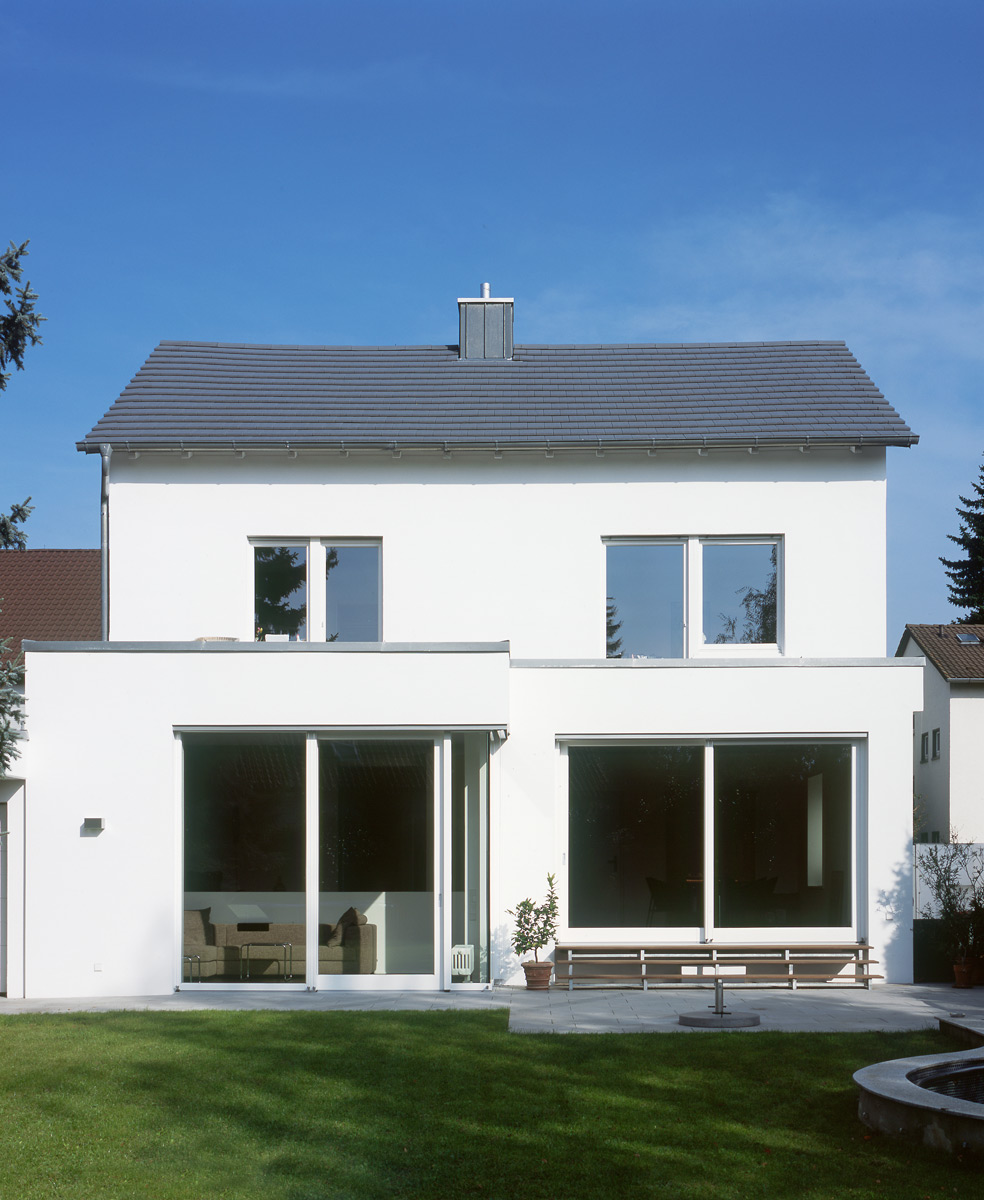 Ein Wohnhaus aus den fünfziger Jahren sollte für eine vierköpfige Familie saniert werden. Neben der Erneuerung der Oberflächen und der Bäder waren der Speicher auszubauen, das Erdgeschoss zu erweitern und die Zugangssituation zu verbessern - alles verteilt auf mehrere Bauabschnitte, da das Haus während der Arbeiten bewohnt blieb.
