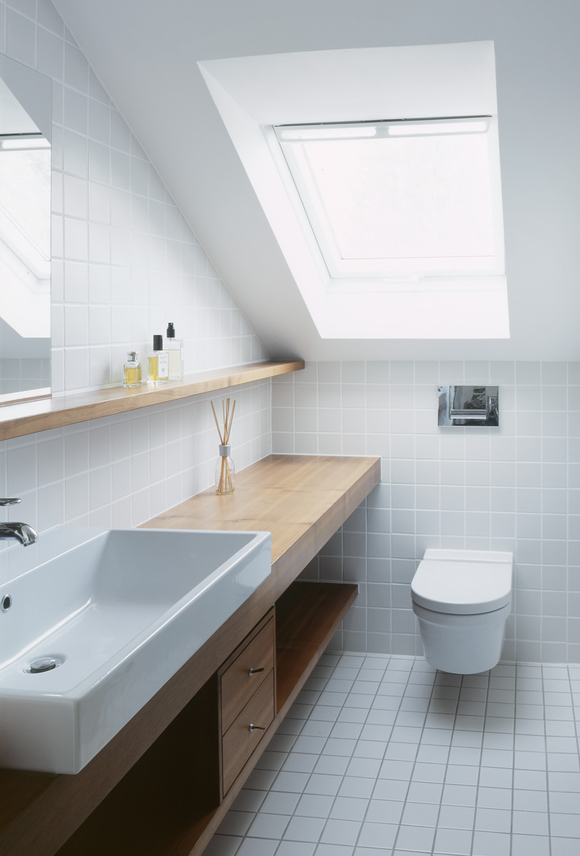 Das ausgebaute Dachgeschoss dient den Eltern als Schlaf- und Arbeitsetage; hier wurde neben dem Schlafzimmer mit Ankleide ein Duschbad, eine Bibliothek und ein Arbeitsplatz eingerichtet. Aus dem engen Speicher ist nunmehr ein angenehmer Aufenthaltsbereich geworden.