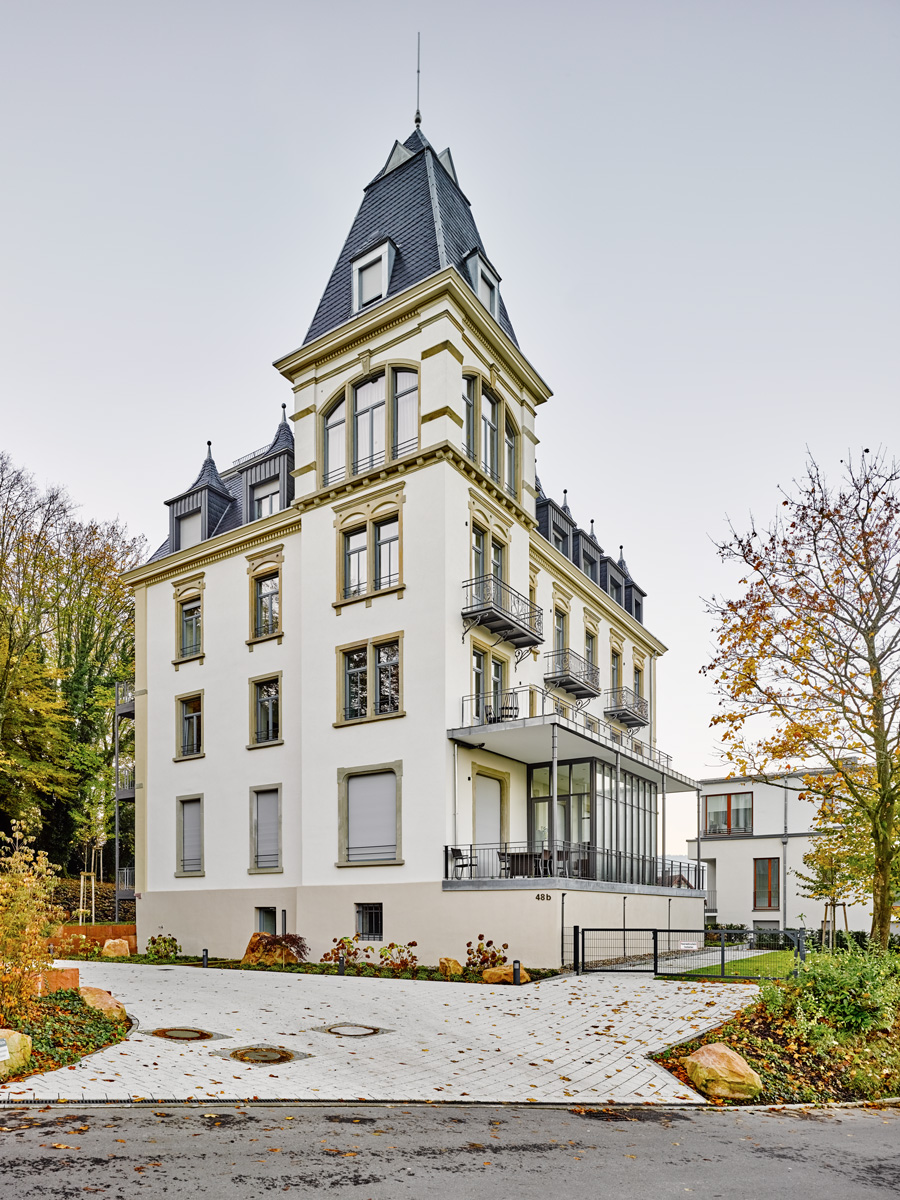 In enger Abstimmung mit dem Denkmalschutz wurde ein Rückbau der durch die vorige Nutzung entstandenen Störungen vorgenommen, um den ursprünglichen Charakter der Villa zurück zu gewinnen. Modern interpretiert wurden Zubauten wie Wintergarten und Balkone.