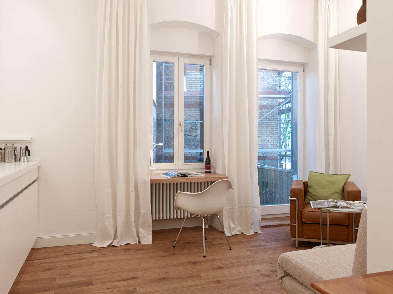 In der letzten erhaltenen Gründerzeitzeile der Kurfürstenanlage, unweit des Heidelberger Hauptbahnhofs, war das denkmalgeschützte Ladengeschäft einer Bäckerei zu Büro- und Atelierräumen auszubauen. Neben der weitgehenden Erhaltung der historischen Front kam es uns darauf an, möglichst nutzungsflexible Räume zu schaffen. Durch vier unabhängig voneinander nutzbare Zugänge lässt sich das Objekt zu einem späteren Zeitpunkt in mehrere separate Nutzungseinheiten trennen.