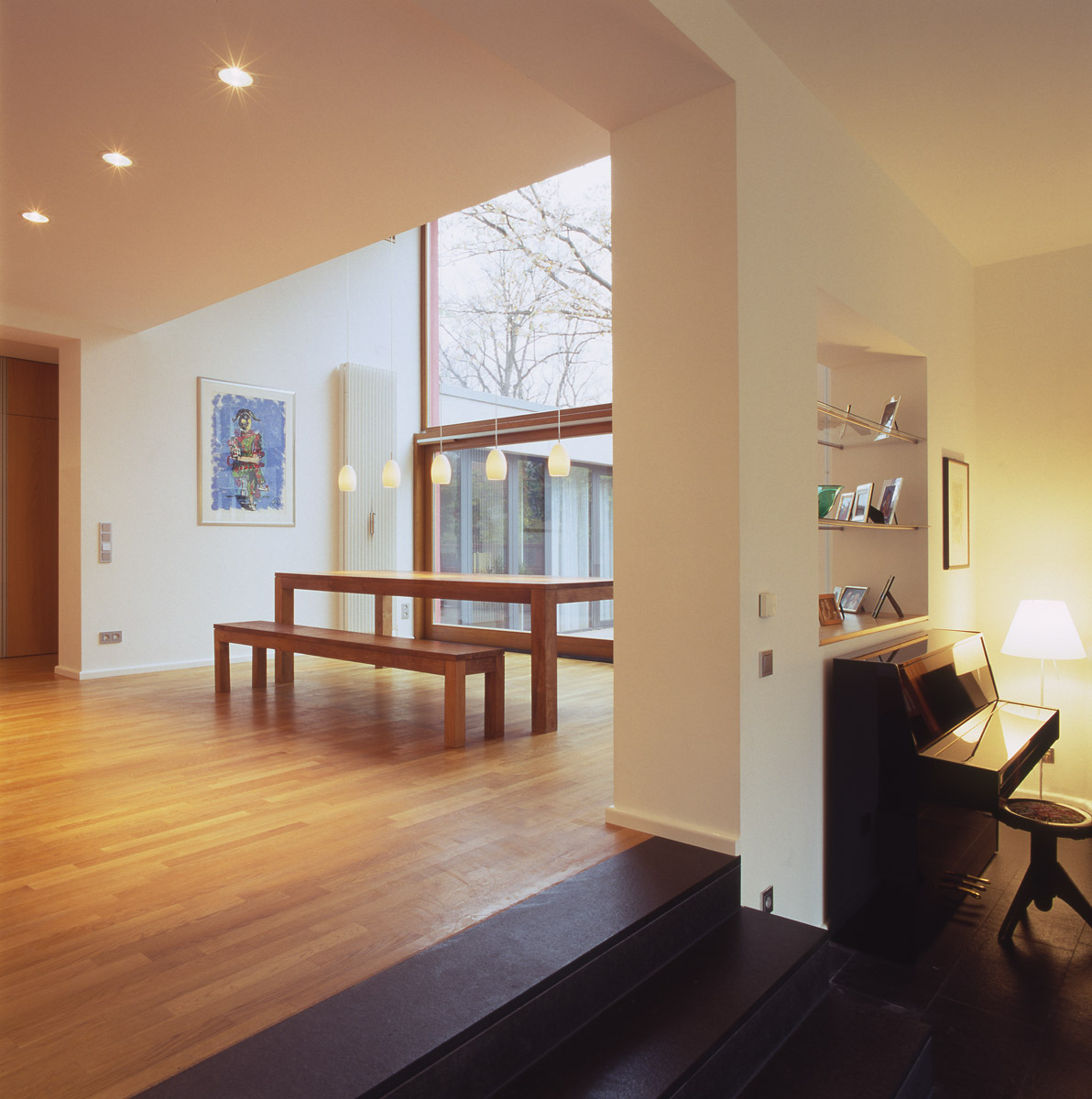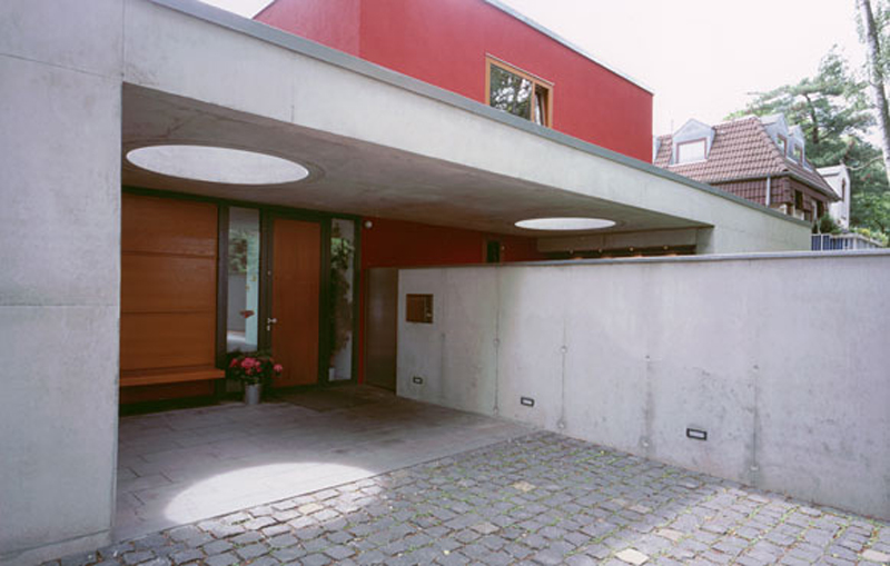 Ein aus den fünfziger Jahren stammendes, gesichtsloses Einfamilienhaus in schöner Berliner Wohnlage sollte in ein anspruchsvolles Wohnhaus für eine große Familie umgebaut werden. Strenge Bauauflagen, eine schwierige Grundstückssituation, der geschützte Baumbestand und die Einbeziehung des Kellergeschosses eines wesentlich älteren Vorgängerbaus erschwerten die Aufgabe.