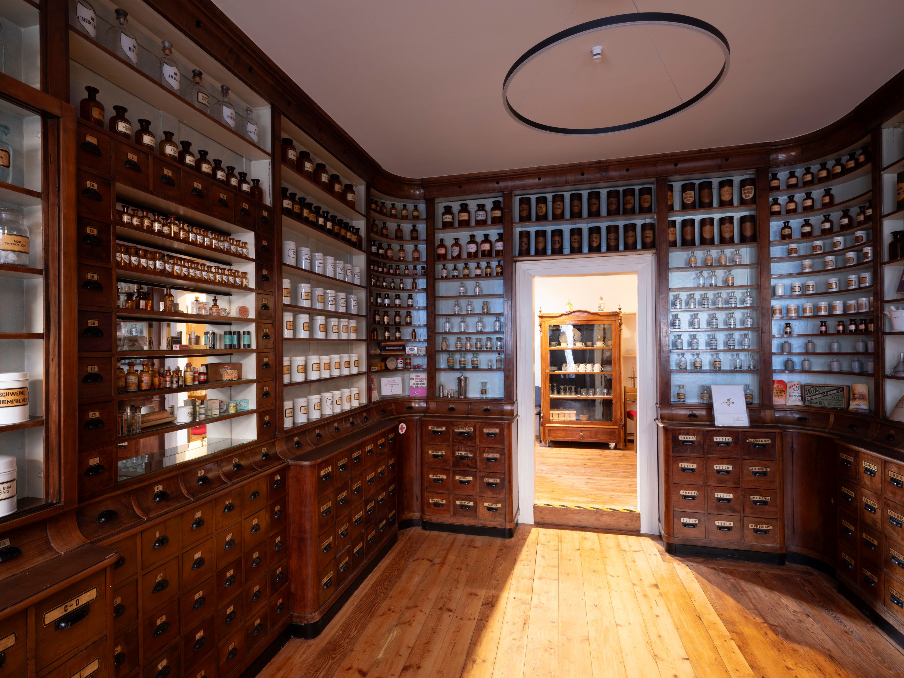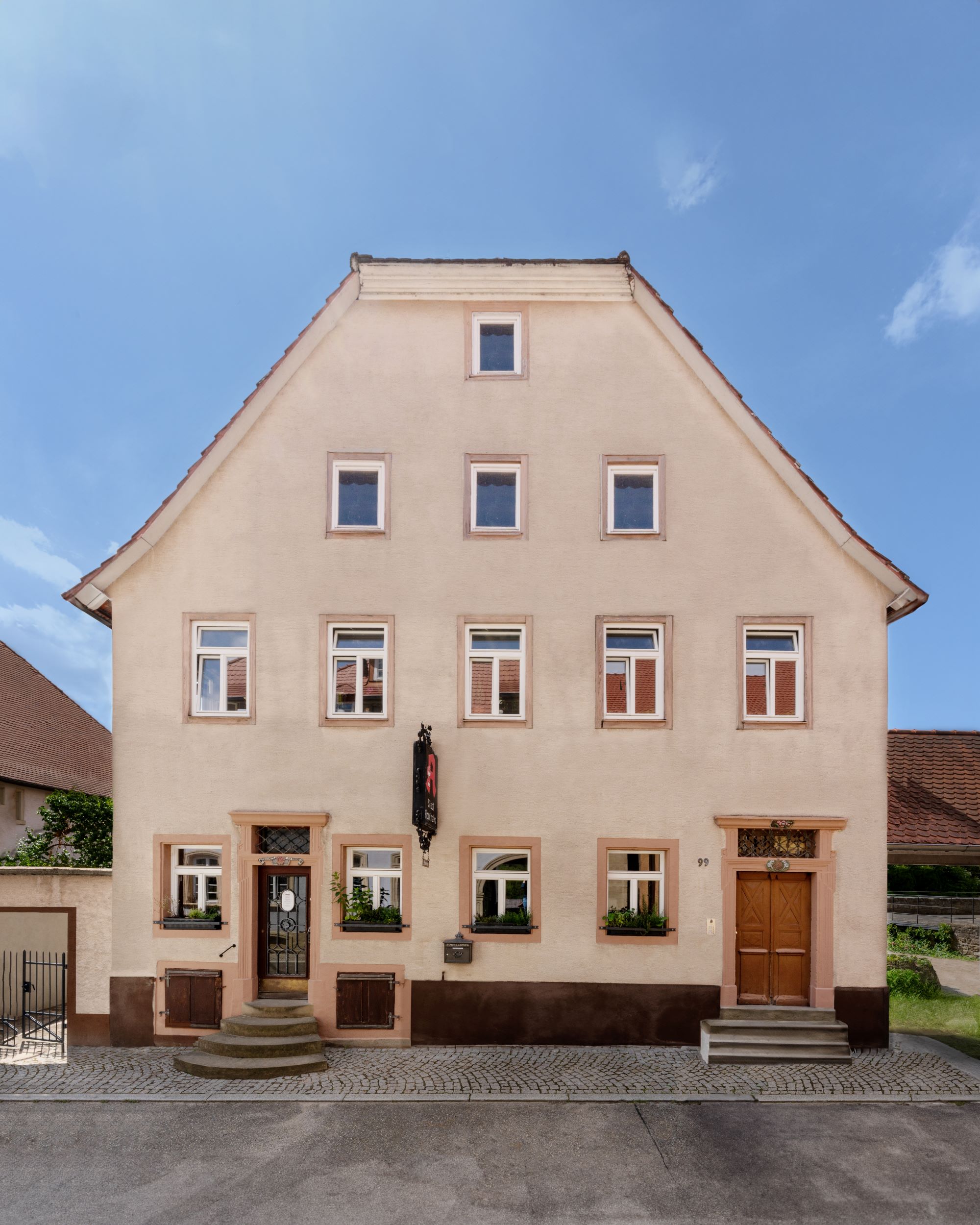 Das denkmalgeschützte Apothekengebäude im historisch bedeutsamen Kraichgau-Städtchen Gochsheim birgt nicht nur eine der besterhaltenen Biedermeier-Einrichtungen, sondern eine ganze Reihe schöner und wertvoller Baudetails, die es galt, unter zahllosen Schichten wie Anstrichen, Belägen und Verkleidungen wieder freizulegen. Während das Haus im Äußeren kaum angetastet wurde, sind innen drei Wohnungen behutsam eingefügt worden. Dabei wurde dem Umstand Rechnung getragen, dass weniger oft mehr ist, und es blieben die unterschiedlichen Zeitschichten des Denkmals an vielen Stellen sichtbar. Die wertvolle alte Apothekeneinrichtung wurde zusammen mit den angrenzenden Räumen im Erdgeschoß als museales Veranstaltungs- und Begegnungszentrum unter Führung eines eigens gegründeten Vereins der Öffentlichkeit zugänglich gemacht.