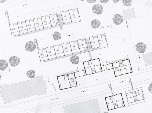 Altbau Bestand wird weitestgehend genutzt: Sozial und Arztstation, Gemeinschaftsräume |Einfacher Ausbaustandard der Sozialwohnungen, geringe Änderungen | Minimierung der Neubauflächen durch hohen Umnutzungsgrad
