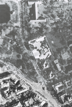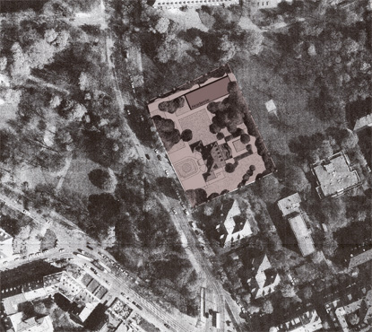 Unter weitgehender Schonung des Baumbestandes sind die Funktionen der Akademie und die Veranstaltungsräume in einer simplen "Kiste" organisiert, die aus dem Wechselspiel mit dem Park und dem durch Lufträume gebildeten Raumkontinuum lebt.