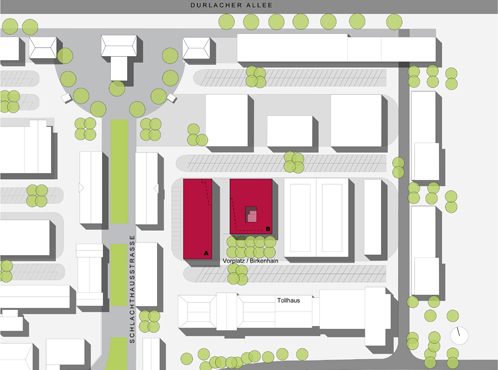 BOB_KA wird an prominenter Stelle im Areal des Alten Schlachthofs an der Durlacher Allee in Karlsruhe entstehen. Der Autofahrer, aber auch der Benutzer der Trambahn, der sich der Innenstadt von Osten her nähert, wird den BOB_KA als Eingangsbauwerk des neuen Kreativparks wahrnehmen.