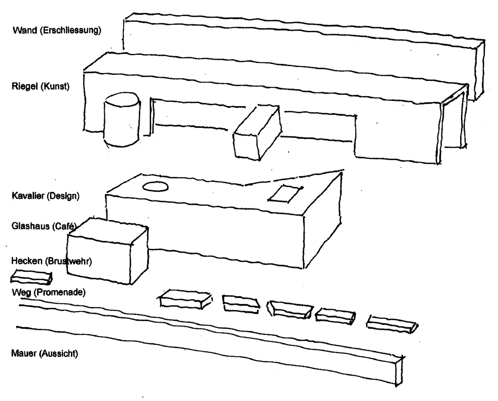 Die ursprüngliche Situation der Stadtbegrenzung wird zum Ausstellungsobjekt erklärt und kann so auch in einem neuen räumlichen Kontext bestehen. Der historische Bestand des Kavalier Dallwigk wird in das neue Museum integriert. Die Wand des Riegels lässt ihn zum ausgestellten Objekt werden, nicht nur für den Museumsbesucher.
