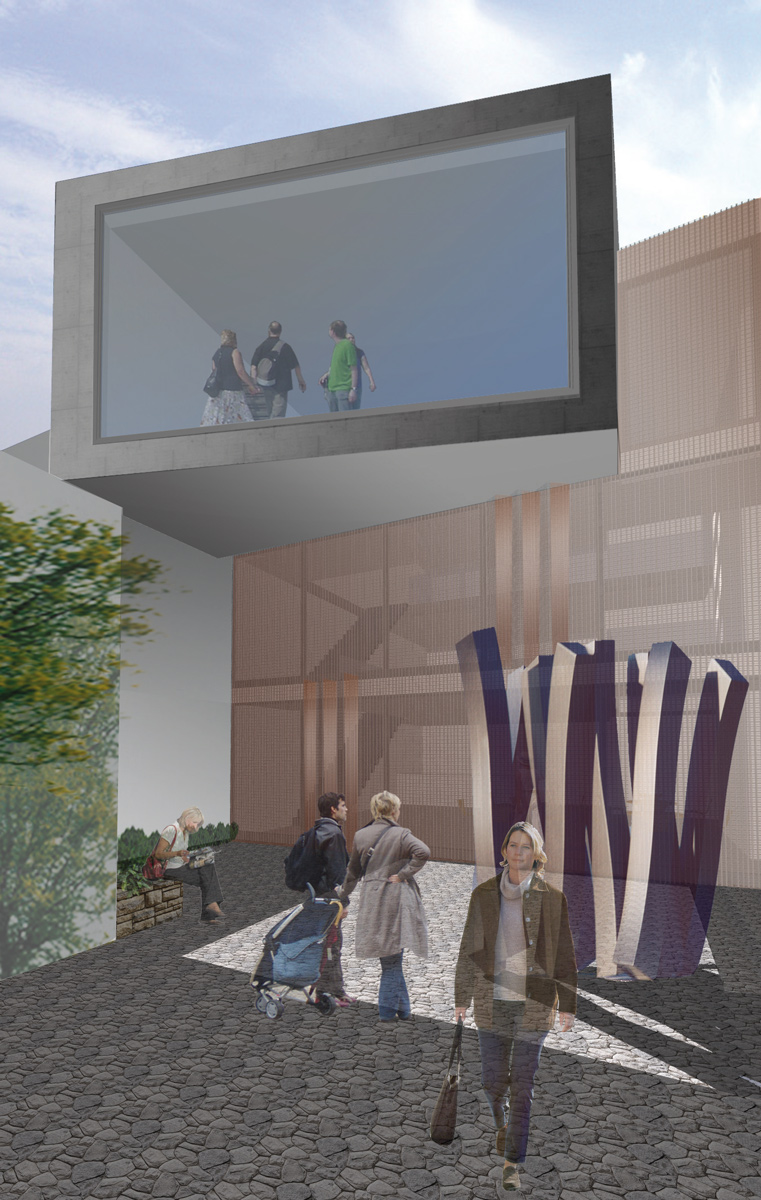 Der hofseitige Anbau eignet sich zur Aufnahme der neuen Räume der Stadtbibliothek, die an dieser Stelle räumlich entkoppelt barrierefrei erschlossen werden kann. Über der zweigeschossigen Bibliothek befindet sich, im historischen Dachstuhl, der Seminarraum. Da die Bibliothek abweichende Öffnungszeiten haben wird, ist sie vom Museumsbereich weitgehend getrennt.