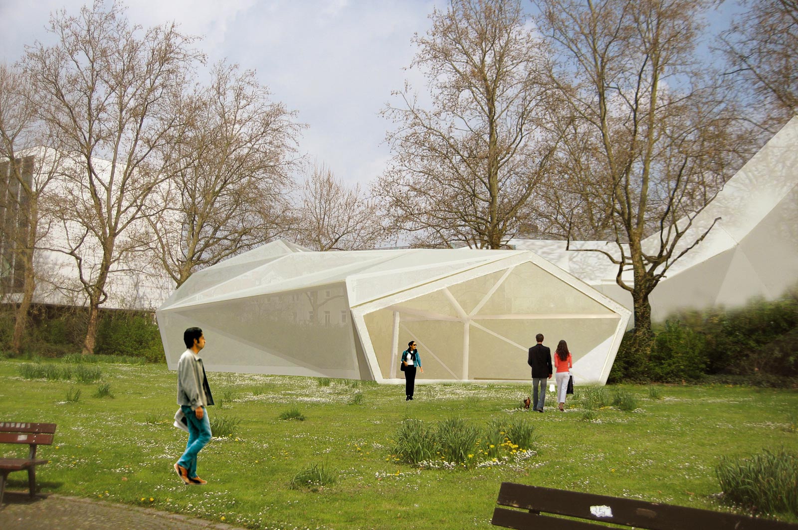 Nachts glüht der Wurm geheimnisvoll, bei Tag taucht die ephemere Hülle das Innere in eine gleichmäßig gedämpfte Helligkeit. Unterschiedliche Lichtszenarien lassen den Pavillon zu einer Bühne zwischen Erde und Himmel, zwischen Idee und Realisierung werden.