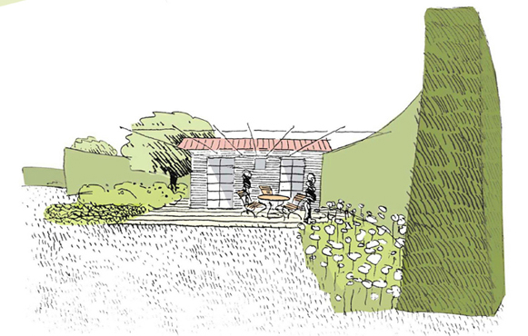 Durch die Addition dieser Grundfigur und deren leichte Variation entstehen unterschiedlichste Außenräume, die aber immer einen sehr privaten Charakter haben.