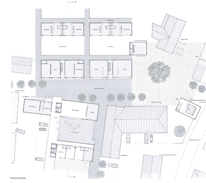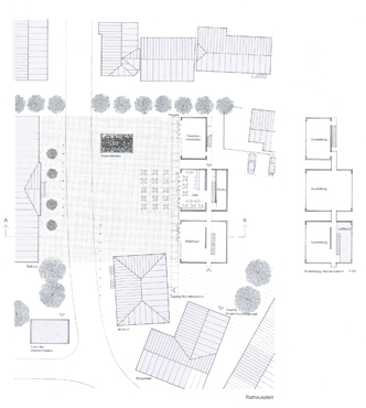 Während der Rathausplatz als Träger der Funktionen Rathaus, Museum und Fremdenverkehrsamt eine repräsentative Wirkung erhält, bilden die Raumfolgen der Brauereistraße mit ihren Geschäften, dem Jugendtreff und dem Altersheim alltägliches Ortsleben ab. Platzfolgen wirken in der Quartiersdurchwegung retardierend gegenüber den Hauptstraßen.