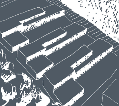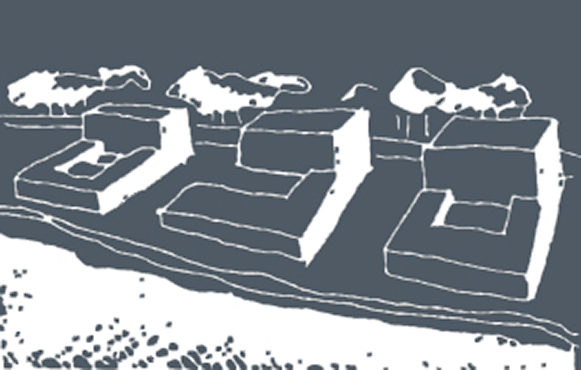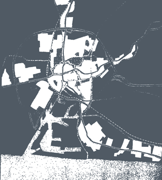 Drei charakteristische Bewegungsräume vernetzen die Stadt mit den vier Situationen im Gebiet und damit das Stadtzentrum mit der freien Landschaft. Aufweitungen und Plätze entlang der Wege markieren die Lage der öffentlichen Gebäude. An den Schnittpunkten der Wege sind über Plätze die öffentlichen Nutzungen angelagert und beleben das Wettbewerbsareal in der gesamten Tiefe.