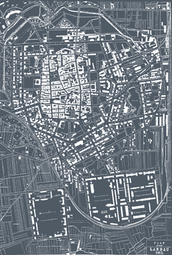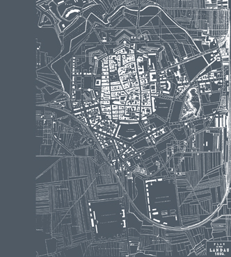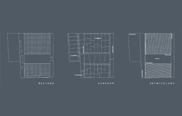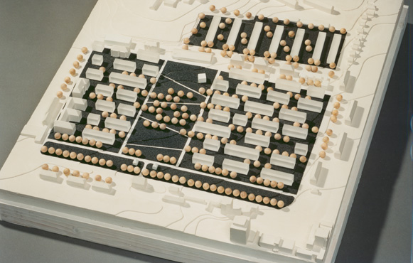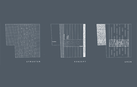 Der Vorschlag zur Neubebauung des Quartier Mangin an der südlichen Landauer Stadteinfahrt thematisiert die typologisch homogene Bebauung der Umgebung in der Fortführung der Zeilenstruktur, wobei jede Zeile als ein endloses Band aufgefasst wird, das in regelmäßiger Form das Wettbewerbsgebiet überlagert.