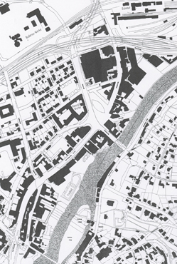 Die Vorhandene Bebauung zwischen Eduard-Kaiser-Straße und Bahnhofstraße wird maßstabsgerecht zu einem kleinen dreieckigen Quartier ergänzt und bildet die neue Platzwand des Buderusplatzes, der jetzt den gesamten Bereich zwischen Brückenstraße und Eduard-Kaiser-Straße verbindet.