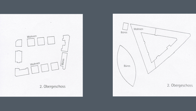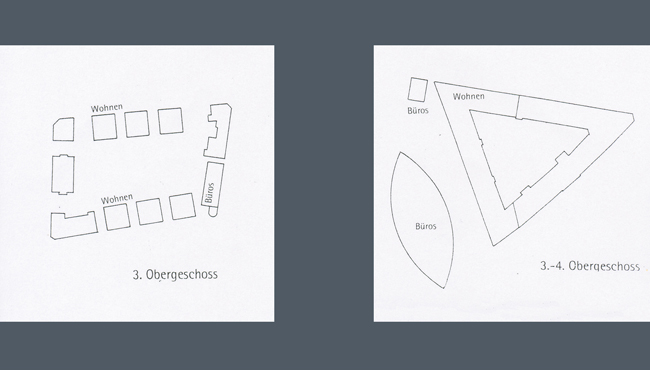 Das denkmalgeschützte Gebäude an der Bahnhofstraße wird abgerissen. Ein Feld von Bäumen, das nach der Form des Hauses geschnitten wird, erinnert an die ehemalige Bebauung. In den Obergeschossen des Kaufhauses finden sich Büros, die aufgrund der separaten Erschließung unabhängig auch in Teilbereichen betrieben werden können.