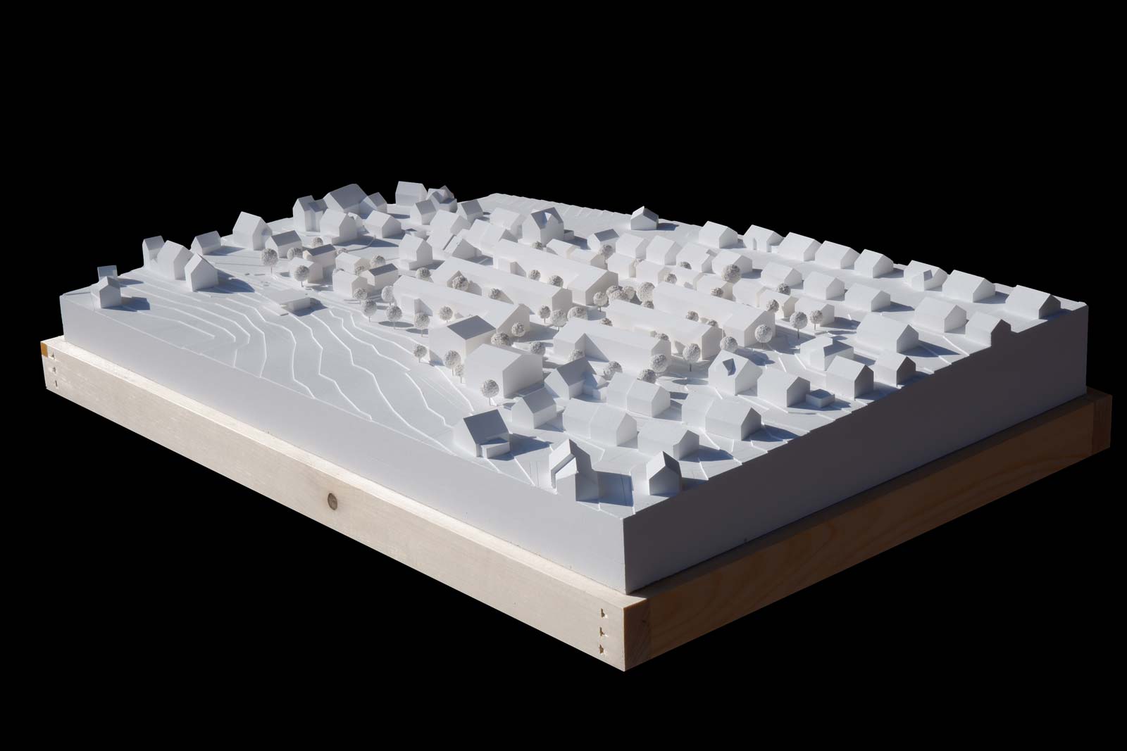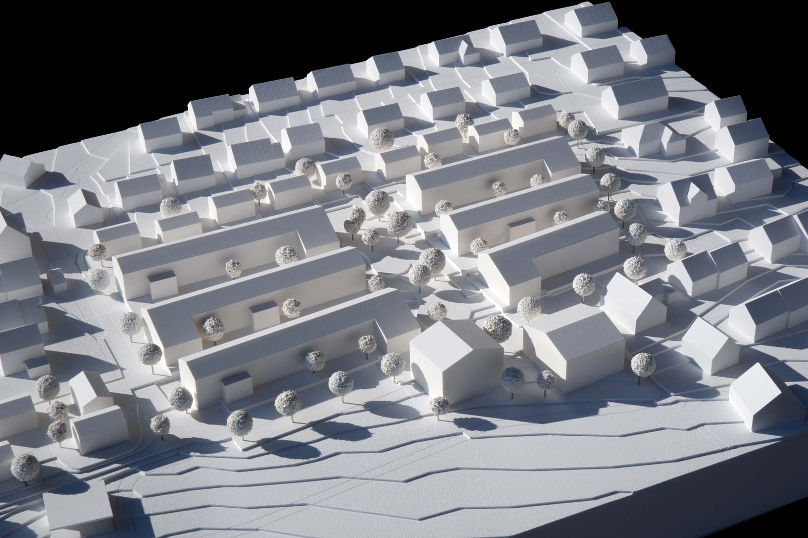 Wohntypologie: Die Gebäudestruktur des verdichteten Geschosswohnungsbaus ist flexibel hinsichtlich kleiner, mittlerer und größere Wohnungen, die alle die Anforderungen nach der Landeswohnraumförderung einhalten, und kann so auf sich ändernder Anforderungen reagieren. Die erdgeschossigen Wohnungen erhalten jeweils einen eigenen Gartenanteil. Miet- und Eigentumswohnungen werden nicht baulich getrennt, ebenso wie Reihenhäuser und Geschosswohnungsbau, auch im Sinne einer sozialen Durchmischung des neuen Quartiers. Die Grenzbebauung der Einfamilienhäuser erlaubt bei wirtschaftlichen Grundstücksgrößen doch einen hohen Grad an Privatsphäre.