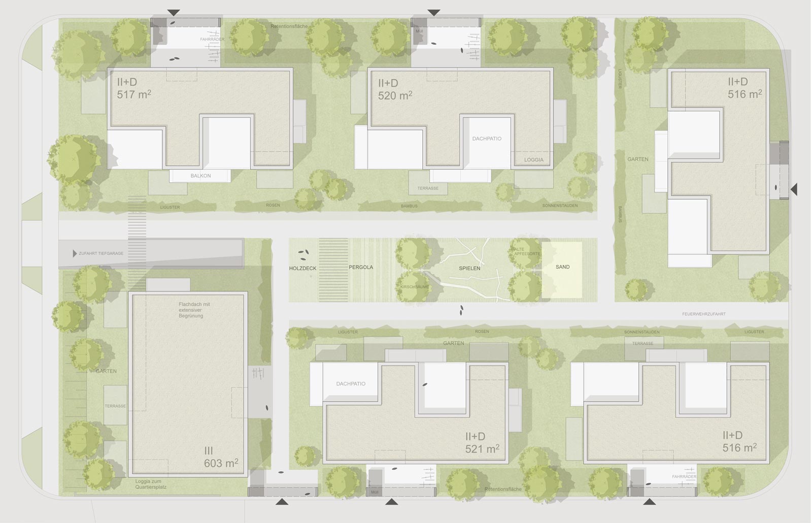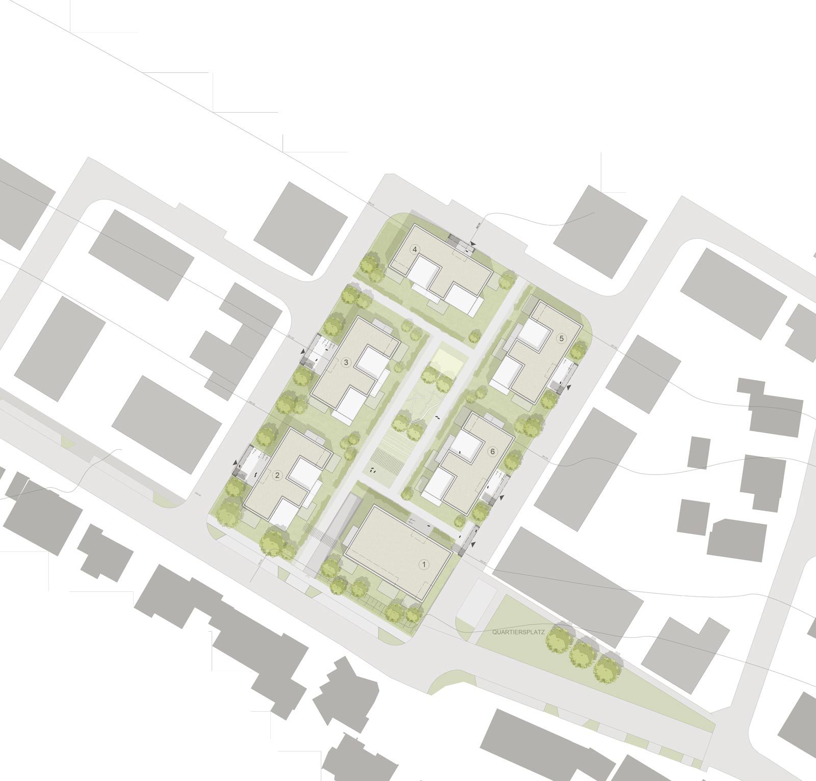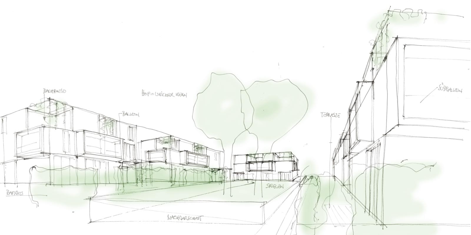 Der Entwurf geht auf die unterschiedlichen Anforderungen und Erwartungshaltungen an den Wettbewerb ein und formuliert eine einfache, logische und zugleich zeitgemäße Antwort, ohne die vielschichtigen Anforderungen an Wohnqualität preiszugeben.
